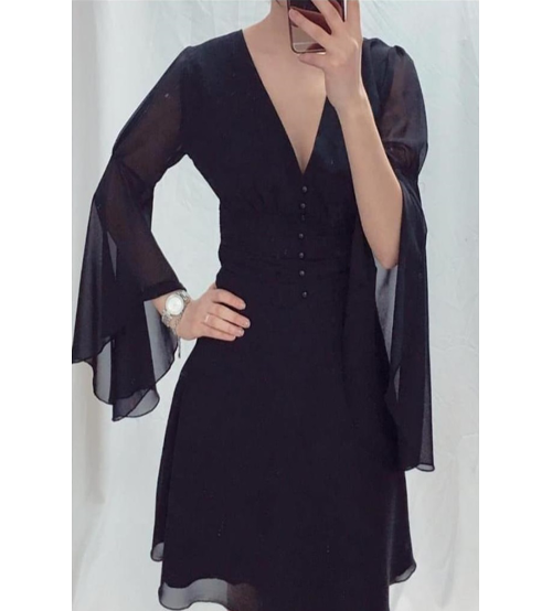 Lola Şifon Düğme Detay İspanyol Kol Elbise0202