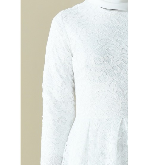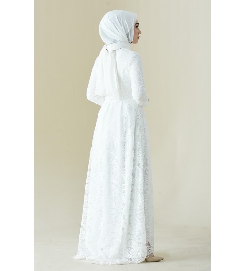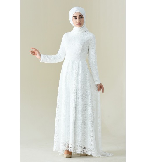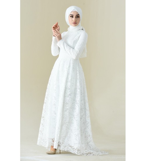 Amine Kabarık Dantelli Tesettür Abiye 0180