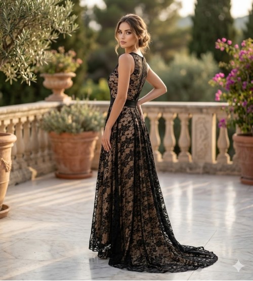 Caroline Astarlı Dantelli Abiye Elbise 0173