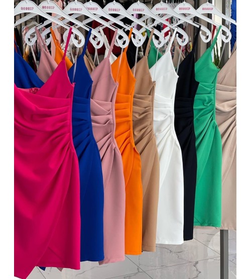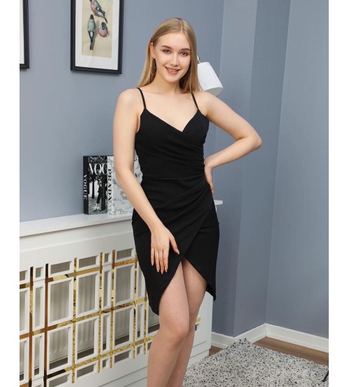 Prest Asimetrik Kesim Askılı Mini Elbise 0073